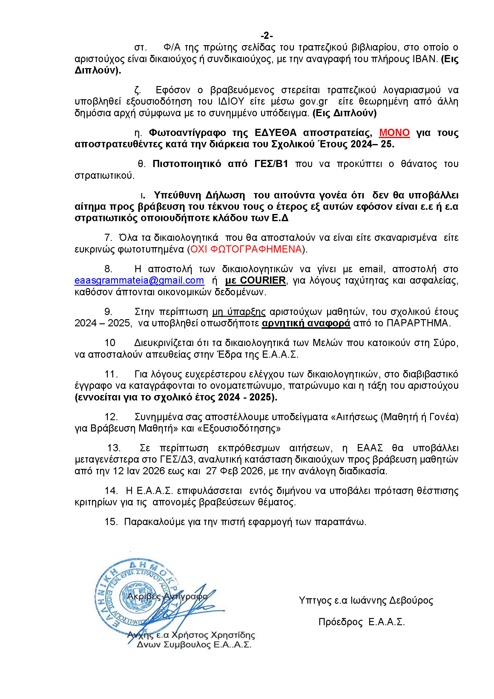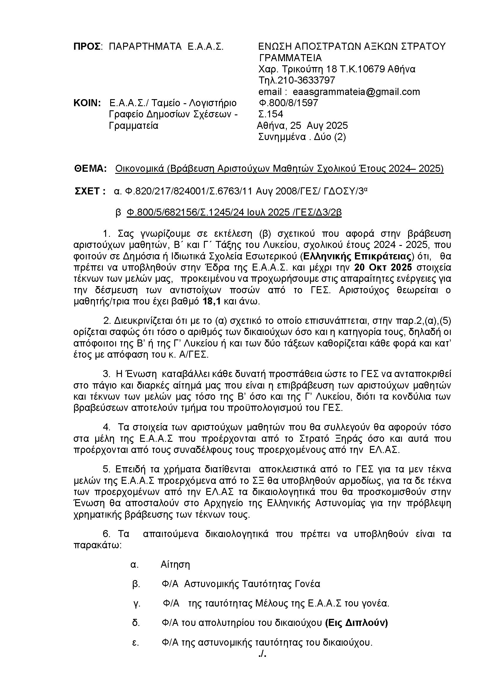 ΒΡΑΒΕΥΣΗ ΑΡΙΣΤΟΥΧΩΝ ΜΑΘΗΤΩΝ ΣΧΟΛΙΚΟΥ ΕΤΟΥΣ 2024-2025