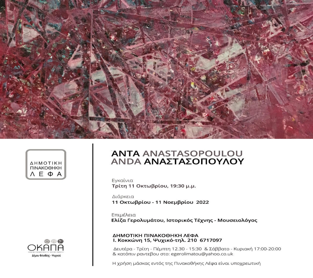 Έκθεση Ζωγραφικής Άντας Αναστασοπούλου Αρχιτέκτων μηχ.Ε.Μ.Π.-Εικαστικός (Κόρη Υποστρατήγου Νικόλαου Αναστασόπουλου)