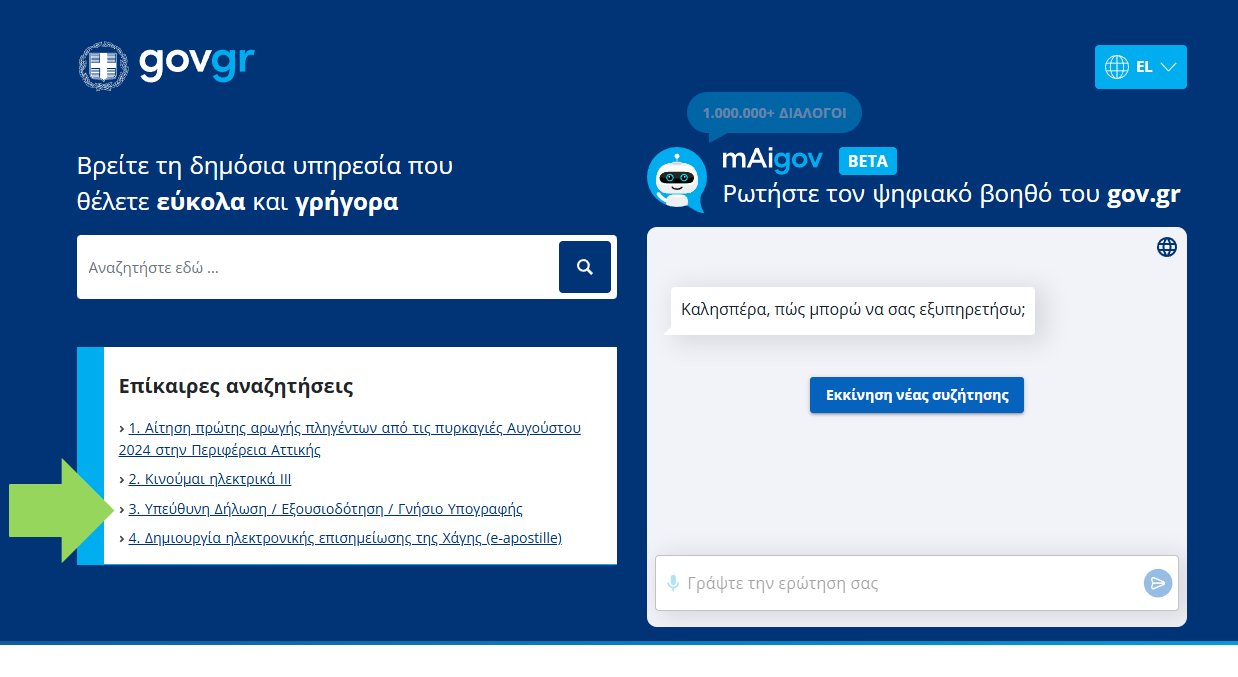 2.Πατάμε πάνω στην επιλογή ΤΡΙΑ που λέει υπεύθυνη δήλωση , εξουσιοδότηση, γνήσιο υπογραφής