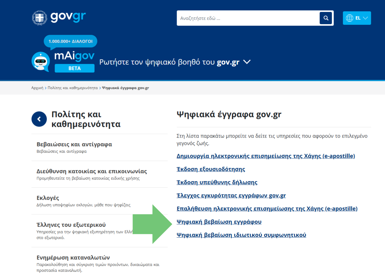 3.Πατάμε πάνω στη ψηφιακή βεβαίωση εγγράφου