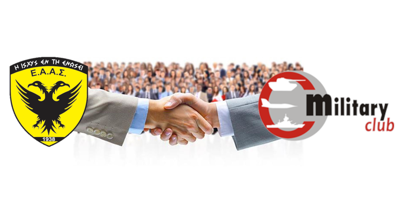 Η Ένωση Αποστράτων Αξιωματικών Στρατού είναι στην ευχάριστη θέση να ανακοινώσει τη συνεργασία της με το MILITARY CLUB, με σκοπό την αξιοποίηση σημαντικών προνομίων και εκπτώσεων για τα μέλη της αλλά και τα μέλη των οικογενειών τους