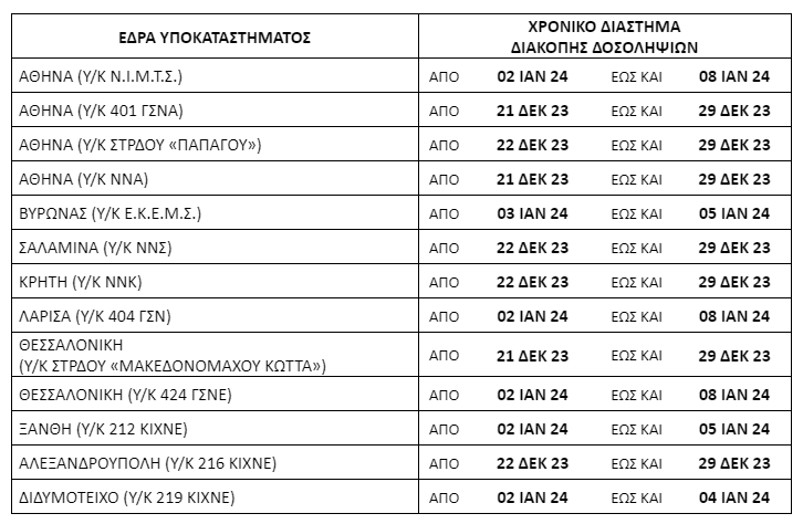 Ημερομηνία Ανακοίνωσης 08 Δεκ, 2023 ΧΡΟΝΙΚΟ ΔΙΑΣΤΗΜΑ ΚΑΤΑ ΤΟ ΟΠΟΙΟ ΤΑ ΥΠΟΚΑΤΑΣΤΗΜΑΤΑ ΤΟΥ ΣΤΡΑΤΙΩΤΙΚΟΥ ΦΑΡΜΑΚΕΙΟΥ ΑΘΗΝΩΝ ΘΑ ΠΑΡΑΜΕΙΝΟΥΝ ΚΛΕΙΣΤΑ ΛΟΓΩ ΔΙΕΝΕΡΓΕΙΑΣ ΑΠΟΓΡΑΦΗΣ Β΄ ΕΞΑΜΗΝΟΥ 2023