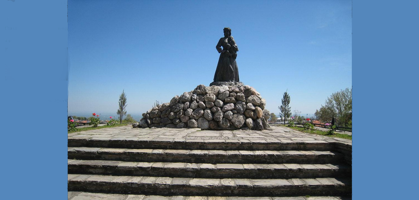 Επίγραμμα πάνω από το ποτάμι της Αράπιτσας, όπου έπεσαν και θυσιάστηκαν 13 γυναίκες της Νάουσας με τα μωρά τους.