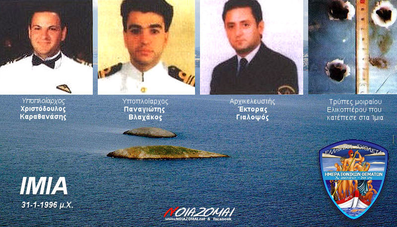 Ήδη στο τέλος του μηνός έχομε την μαύρη και θλιβερά 25η επέτειο από της Κρίσεως των Ιμίων ή Λιμνιών (Νύκτα 30/31 Ιαν. 1996). Τότε, το Ελληνικό Κράτος εφάνη ανίκανο με τους αδέξιους και κάκιστους χειρισμούς του να αντιμετωπίσει την εις βάρος μας διαμορφωθείσαν γνωστή μας κατάσταση (βλέπε σχετικόν άρθρον μου «ΕΣΤΙΑ», Φεβρ. 2007).