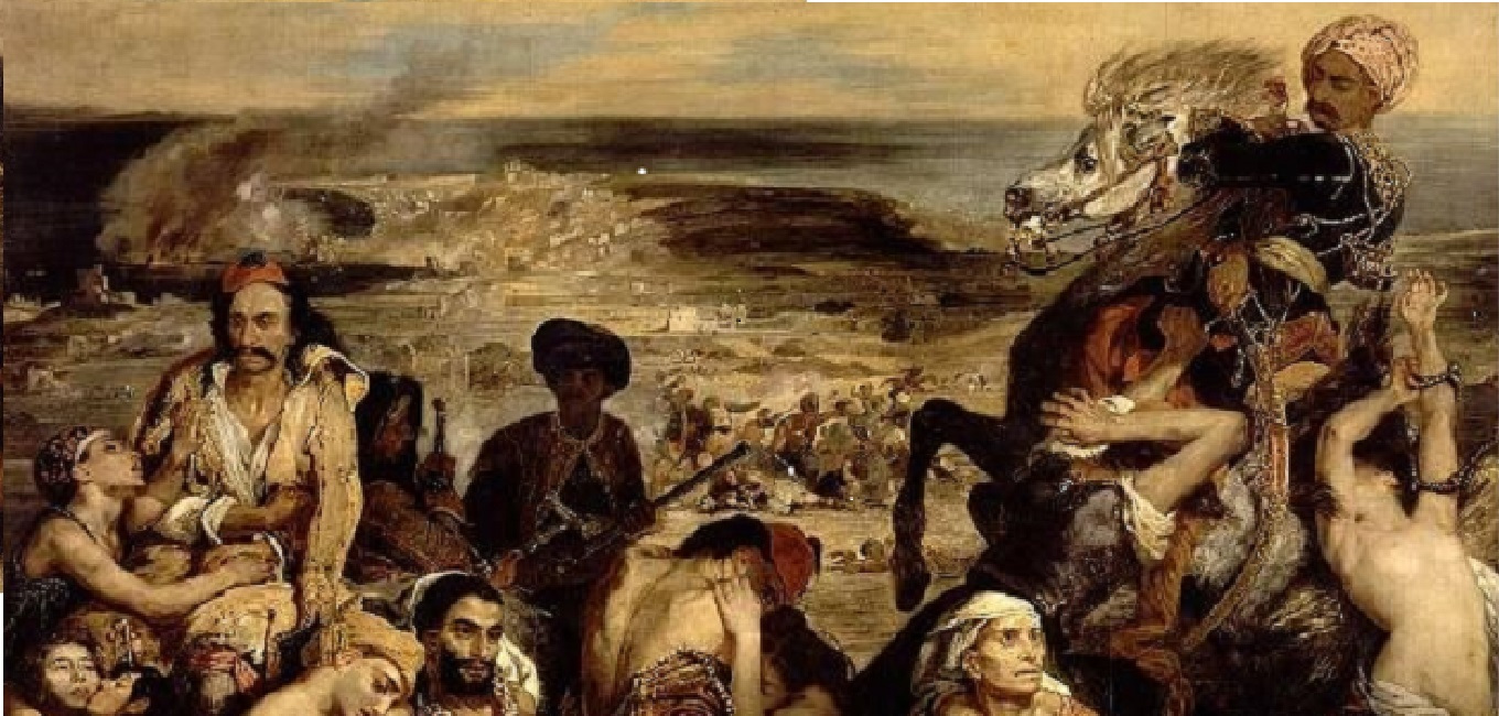 Από τη μεγάλη σφαγή της Χίου εμπνεύστηκε ο μεγάλος Γάλλος ζωγράφος Ντελακρουά που απεικόνισε με τον πλέον γλαφυρό τρόπο τις φρικιαστικές σκηνές της σφαγής στο σχετικό πίνακα του και ο Βίκτωρ Ουγκώ στο ποίημά του «Το Ελληνόπαιδο», που περιγράφει στο πρόσωπο ενός παιδιού, την απόγνωση αλλά και την ελπίδα για αναγέννηση. Αποσπάσματα του ποιήματος, σε μετάφραση του Κωστή Παλαμά, παρατίθενται παρακάτω: