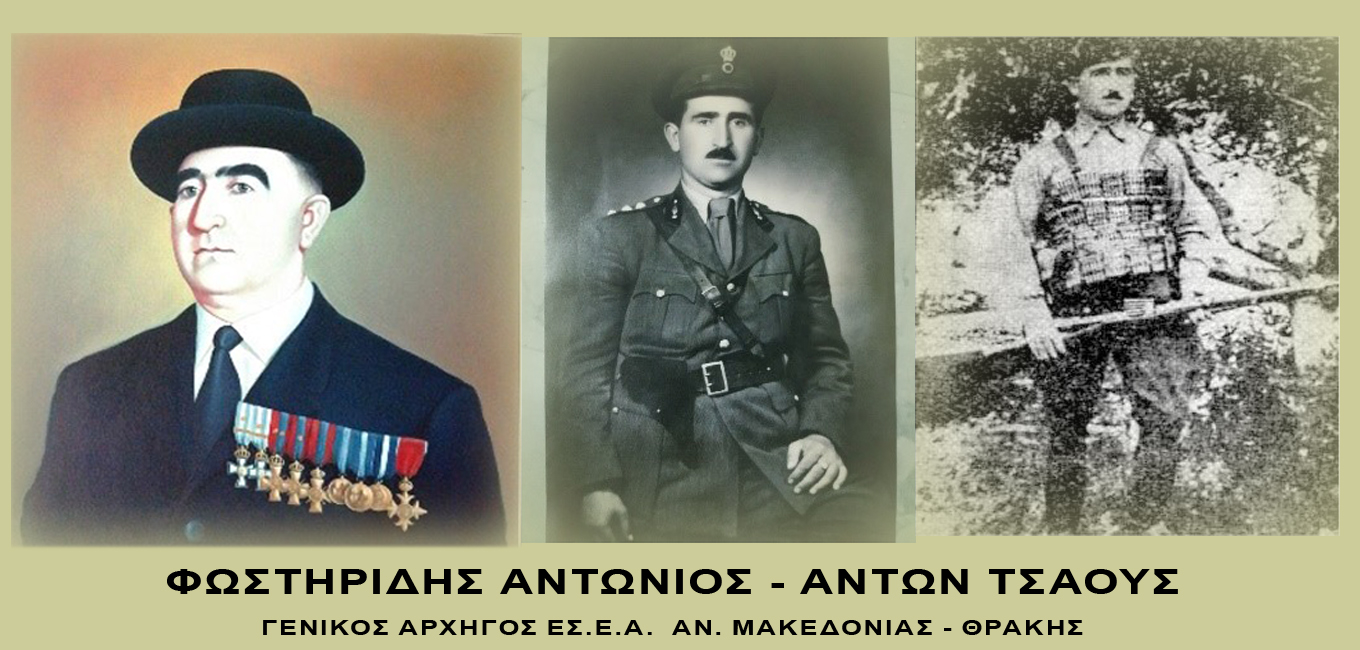 Τον έφεδρο αντισυνταγματάρχη πυροβολικού Αντώνιο Κ. Φωστηρίδη για να πολεμήσει τον κατακτητή. Εξήλθεν αντάρτης το 1941. Δια της προσωπικής του επιβολής κατόρθωσε να συγκροτήσει ισχυρή ομάδα Εθνικοφρόνων ανταρτών και να επιφέρει σοβαρές απώλειες επί των Γερμανοβούλγαρων.