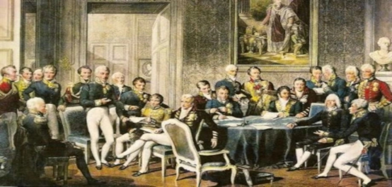 Οι τέσσερις μεγάλες δυνάμεις της Ευρώπης που είχαν νικήσει τη Γαλλία του Ναπολέοντα, η Αυστρία, η Ρωσία, η Πρωσία και η Βρετανία, συγκάλεσαν την 1η Νοεμβρίου 1814 συνέδριο στη Βιέννη, για να τερματίσουν και επίσημα τον πόλεμο και να λύσουν τα προβλήματα που αυτός είχε προκαλέσει. Ήταν το «Συνέδριο Ειρήνης της Βιέννης» ( 1814 – 1815). Το συνέδριο κατέληξε στην ομώνυμη «Συνθήκη Ειρήνης» (1815).
