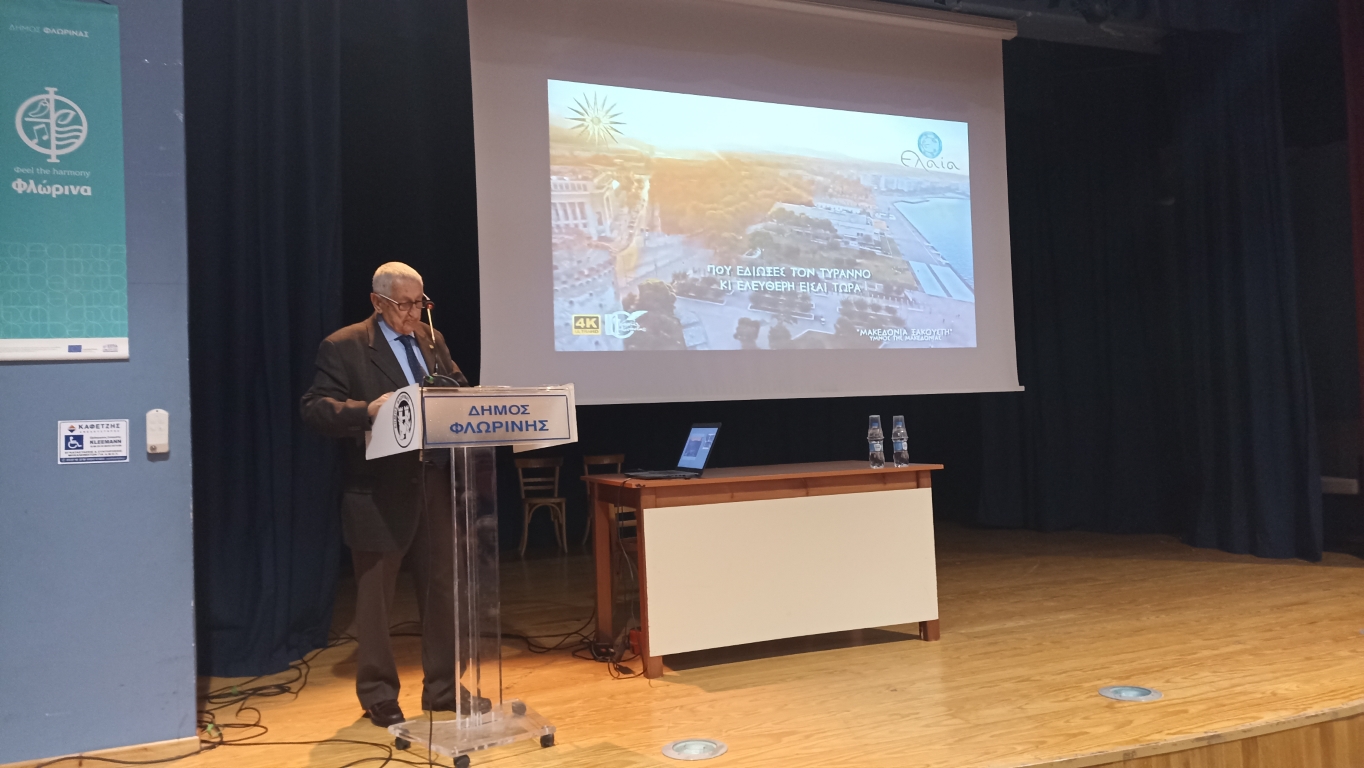 Στη συνέχεια, πραγματοποιήθηκε ομιλία με θέμα «Δυτική Μακεδονία: Γη Ελλήνων - Φλώρινα: Μαγική Πόλις» με ομιλητή τον Υπτγο ε.α. Μπολώση Χρήστο, μέλος του Δ.Σ/Ε.Α.Α.Σ. ενώ σύντομους χαιρετισμούς απηύθυναν ο Πρόεδρος της Ε.Α.Α.Σ. Υπτγος ε.α. Δεβούρος Ιωάννης και ο Πρόεδρος του Τοπικού παραρτήματος Ταξχος ε.α. Ντάτος Ιωάννης .
