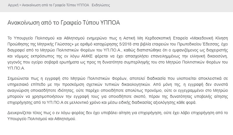 Για τον σύλλογο των Σκοπιανών «Κρστε Μισίρκοβ» που ενέγραψε στο Μητρώο Πολιτιστικών Φορέων το Υπουργείο Πολιτισμού δεν χρειάζεται να δούμε το καταστατικό του. Χρόνια τώρα η Χώρα μας αντιμετωπίζει πολλαπλές προσπάθειες πολιτισμικής διείσδυσης, πολιτικής επιρροής και δημιουργίας ανύπαρκτων καταστάσεων τω βορείων γειτόνων μας στον ελληνικό χώρο. Ειδικότερα μετά την υπογραφή της Συνθήκης των Πρεσπών φαίνεται ότι αποθρασύνονται.
