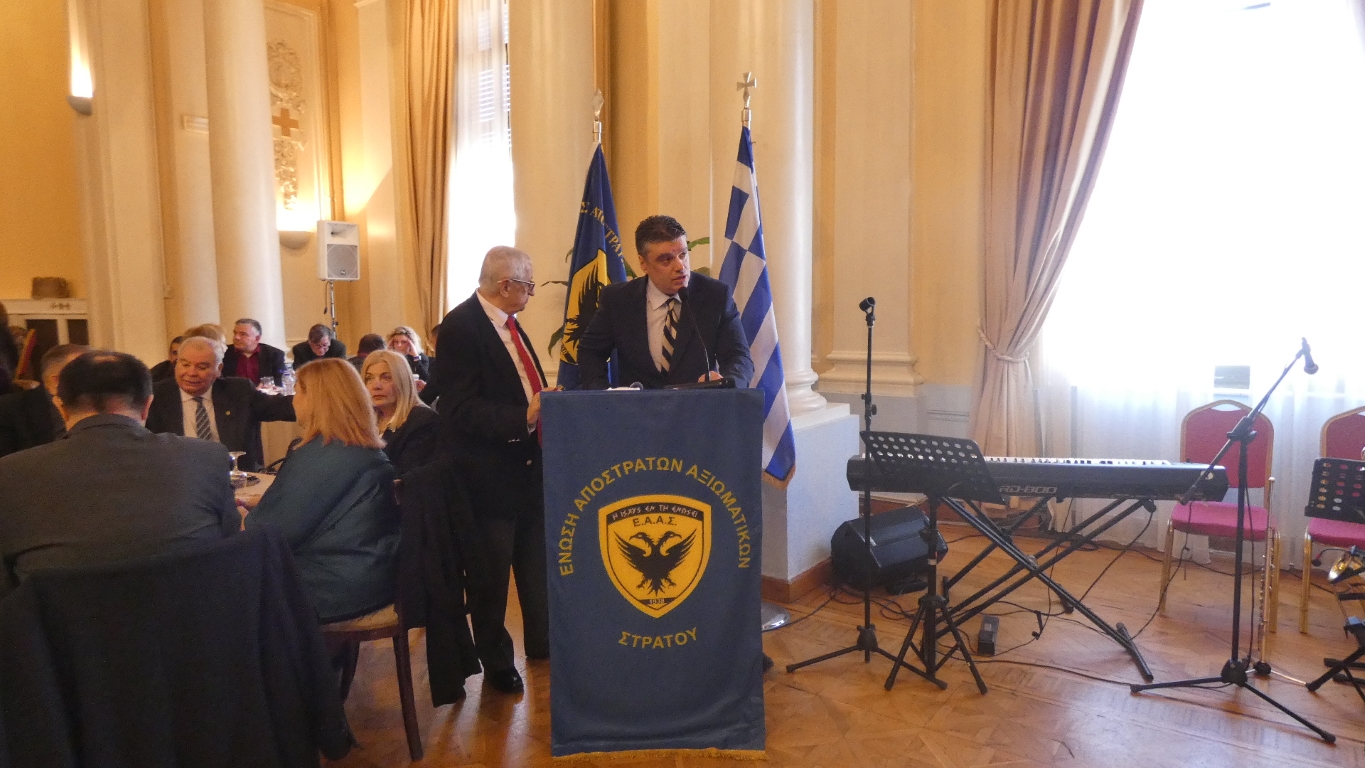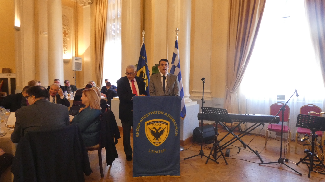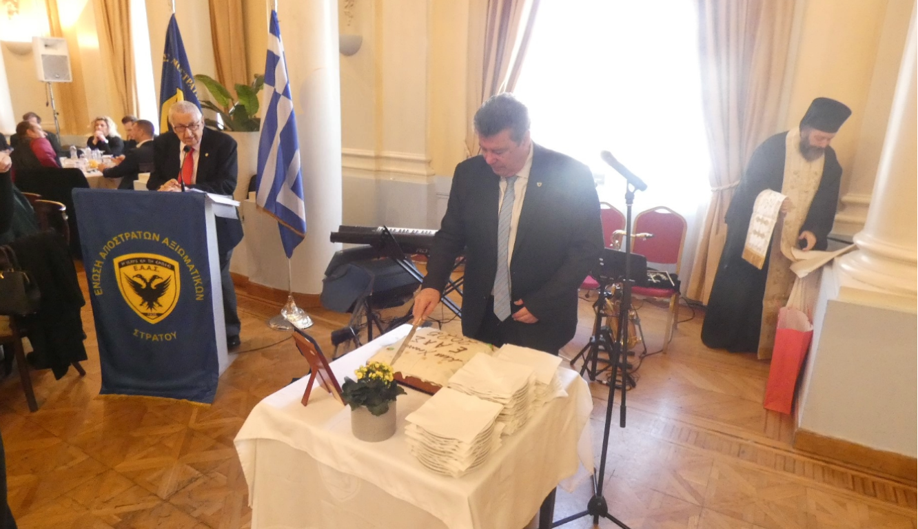 Την εκδήλωση χαιρέτησε ο Πρόεδρος της Ε.Α.Α.Σ. Υπτγος ε.α. Ιωάννης Δεβούρος ενώ στη συνέχεια ο Θεοφιλέστατος Επίσκοπος Σταυροπηγίου κ.κ.Αλέξιος και εκπρόσωπος του Αρχιεπισκόπου Αθηνών και πάσης Ελλάδος ευλόγησε τη βασιλόπιτα με ευχές για ένα ευλογημένο Νέον Έτος.