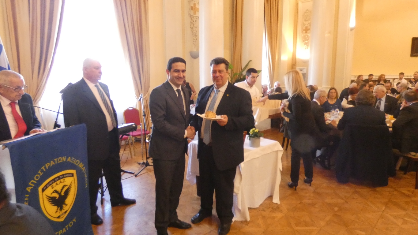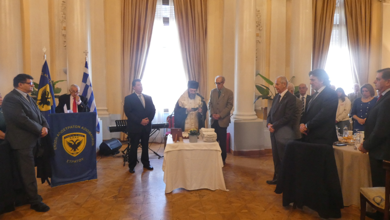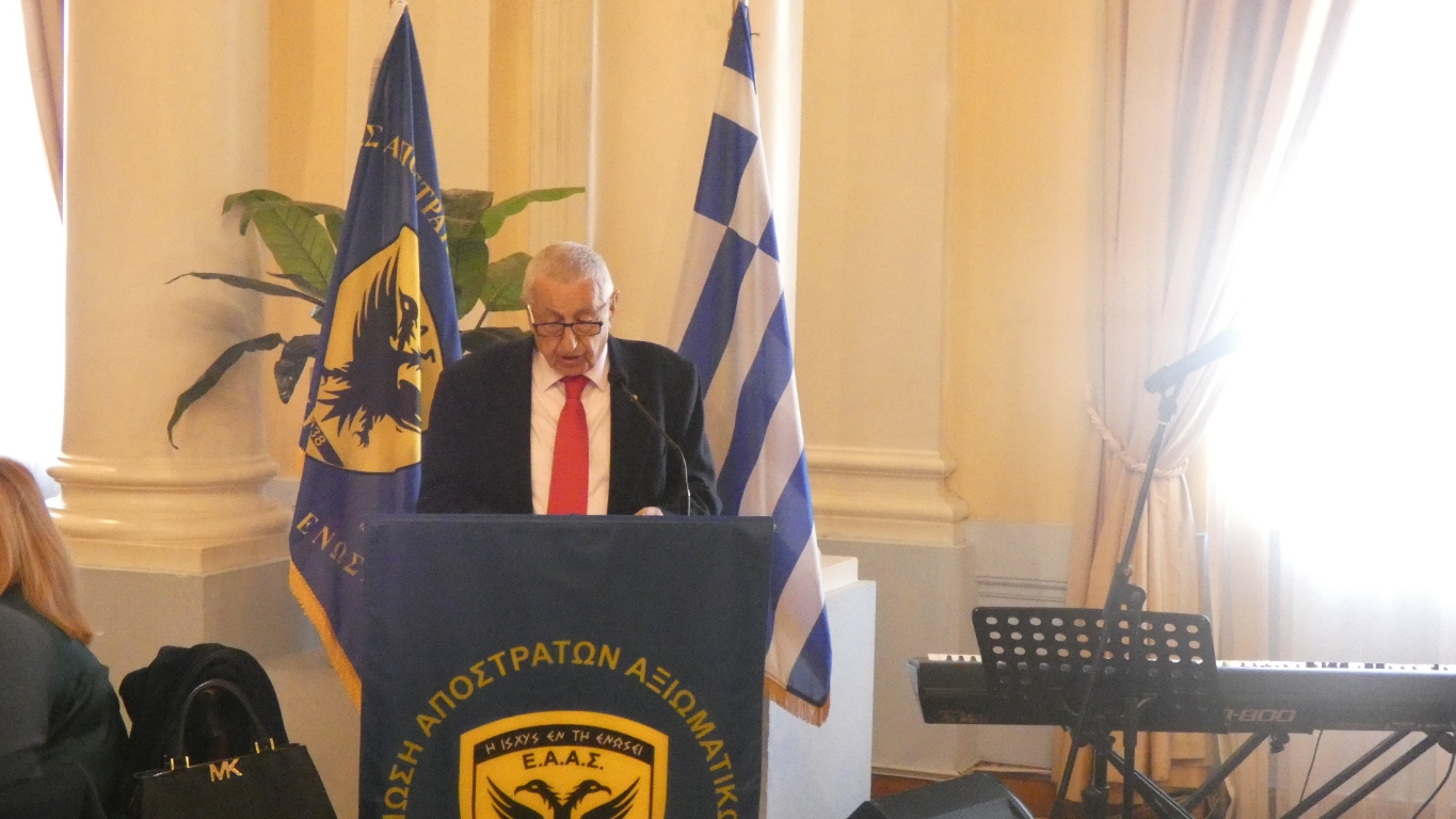 Την εκδήλωση χαιρέτησε ο Πρόεδρος της Ε.Α.Α.Σ. Υπτγος ε.α. Ιωάννης Δεβούρος ενώ στη συνέχεια ο Θεοφιλέστατος Επίσκοπος Σταυροπηγίου κ.κ.Αλέξιος και εκπρόσωπος του Αρχιεπισκόπου Αθηνών και πάσης Ελλάδος ευλόγησε τη βασιλόπιτα με ευχές για ένα ευλογημένο Νέον Έτος.