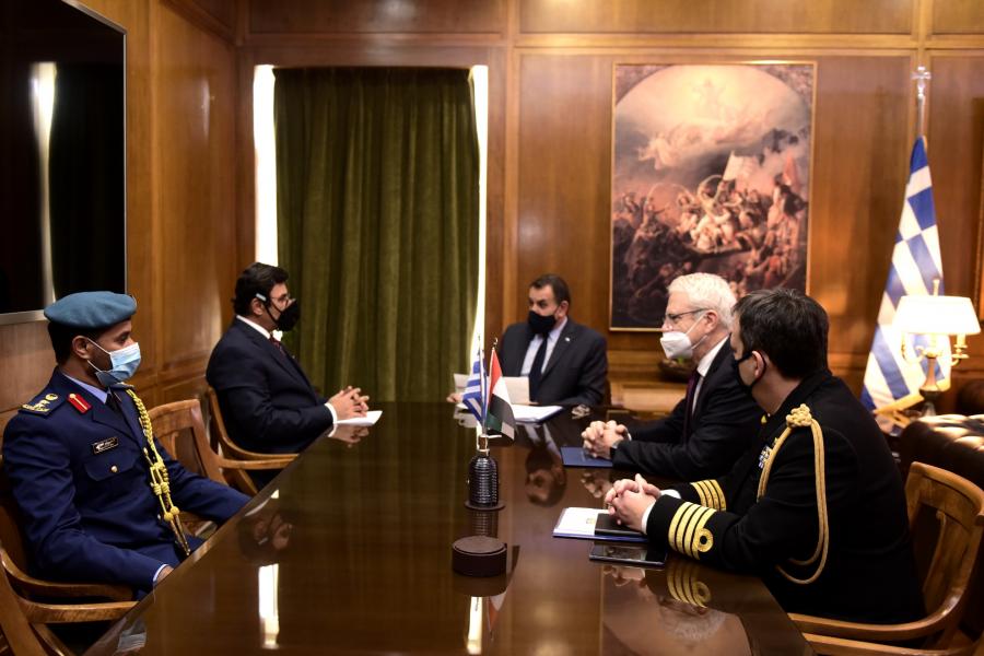 O Υπουργός Εθνικής Αμύνης κ. Νικόλαος Παναγιωτόπουλος δέχθηκε σήμερα στο γραφείο του σε εθιμοτυπική συνάντηση το νέο Πρέσβη των Ηνωμένων Αραβικών Εμιράτων στην Ελλάδα κ. Σουλεϊμάν Αλ Μαζρούι (SulaimanAl Μazroui), με τον οποίο συζήτησε θέματα περαιτέρω ενίσχυσης της διμερούς συνεργασίας στον αμυντικό τομέα.