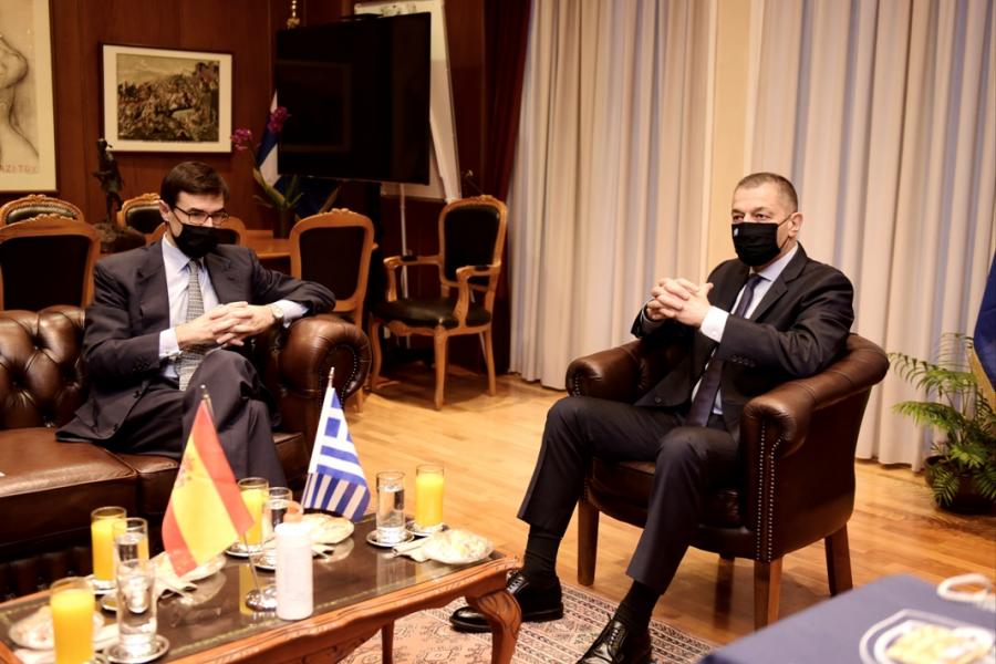 Ο Υφυπουργός Εθνικής Άμυνας Αλκιβιάδης Στεφανής, την Τρίτη 2 Φεβρουαρίου 2021, συναντήθηκε με τον Ισπανό Υφυπουργό Εξωτερικών αρμόδιο για θέματα της Ευρωπαϊκής Ένωσης, κ. Juan González-Barba Pera, τον οποίο συνόδευε ο Πρέσβης της Ισπανίας στην Ελλάδα κ. Enrique Viguera Rubio.