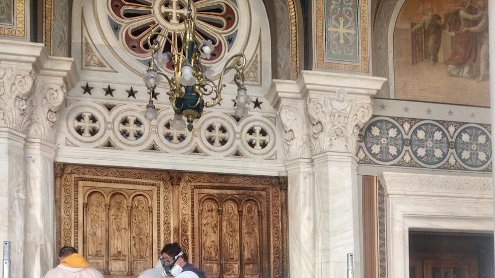 Εργασίες συντήρησης πραγματοποιούνται στην πύλη και σε άλλες ξύλινες θύρες του Μητροπολιτικού ναού Αθηνών εν ενόψει του εορτασμού της 25ης Μαρτίου. Η περίτεχνη ξύλινη κεντρική πύλη του ναού, που είναι αφιερωμένος στον Ευαγγελισμό της Θεοτόκου, κοσμείται από ολόσωμες μορφές αγίων και με ανάγλυφα διακοσμητικά μετάλλια.